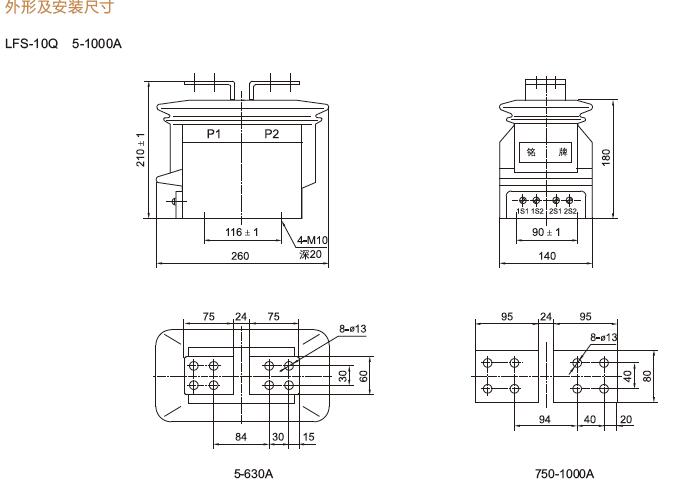 三、LFS-10Q、LFSQ-10Q電流互感器產品外形及安裝尺寸