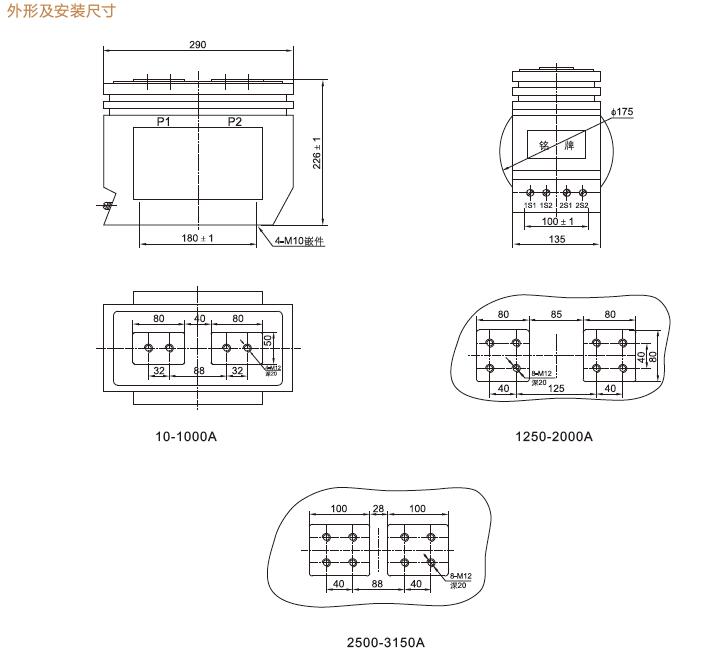 三、LZZBJ12-10A、LZZBJ12-10B、LZZBJ12-10C戶內電流互感器安裝尺寸及外形