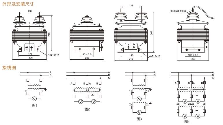三、JDZ16-3、JDZ16-6、JDZ16-10電壓互感器產品外形、安裝尺寸及接線圖