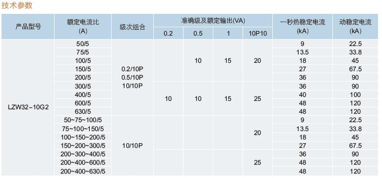 五、LZW32-10G2倒立式電流互感器技術(shù)參數(shù)